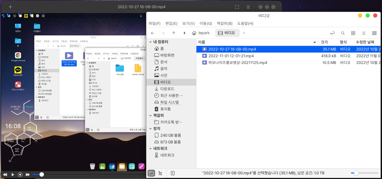 녹화시작 버튼을 눌러 녹화를 시작합니다. 녹화된 동영상은 설정에서 지정한 폴더에 저장됩니다.