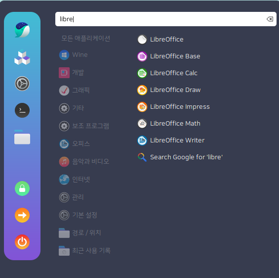 리브레오피스는 하모니카의 시작메뉴에서 바로 검색해서 사용할 수 있습니다.