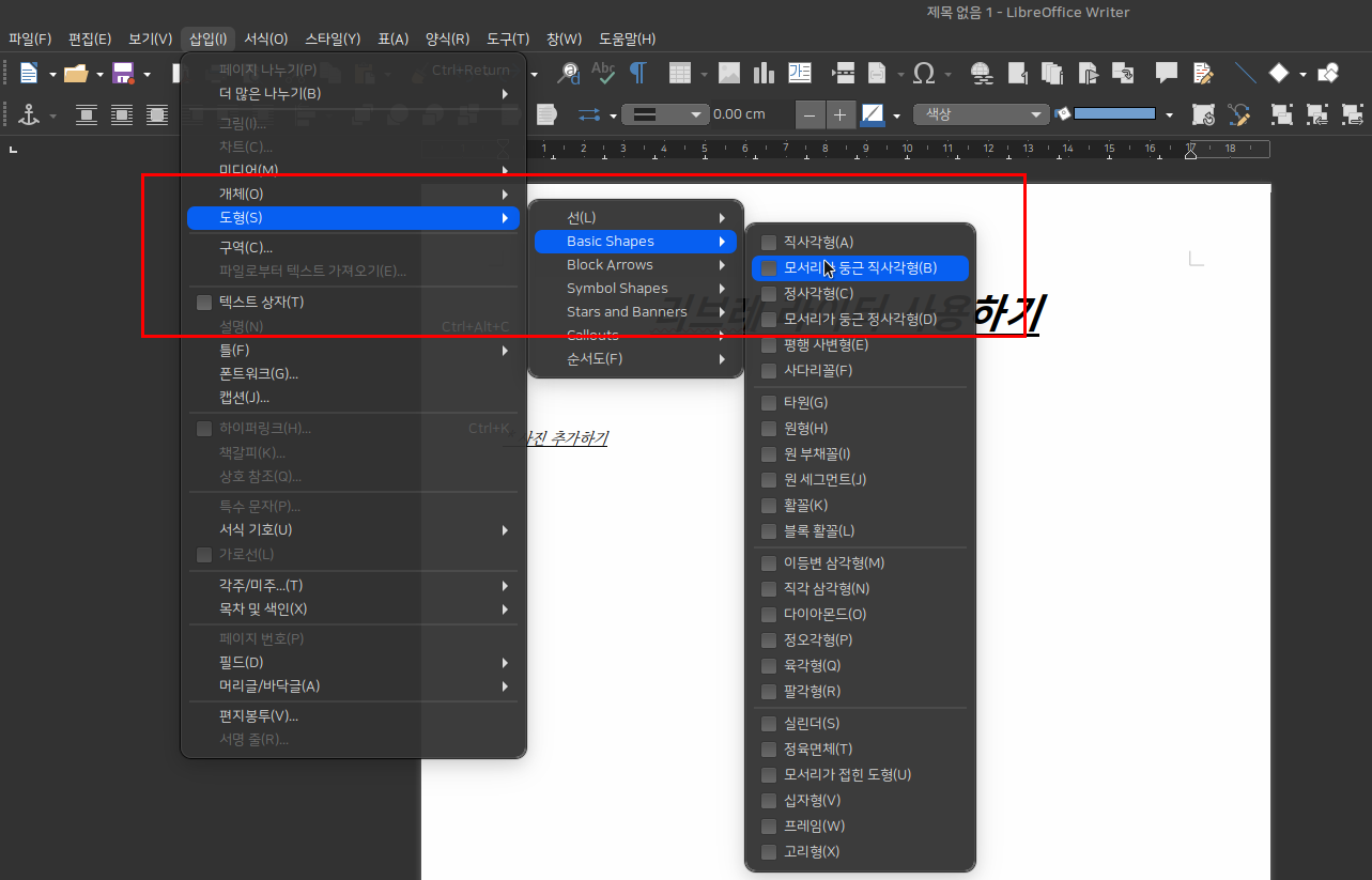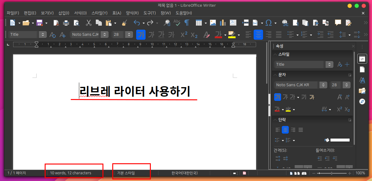 글쓰기는 한글과 MS의 Word에 대응하는 리브레 오피스의 라이터를 사용하여 문서를 작성할 수 있습니다.