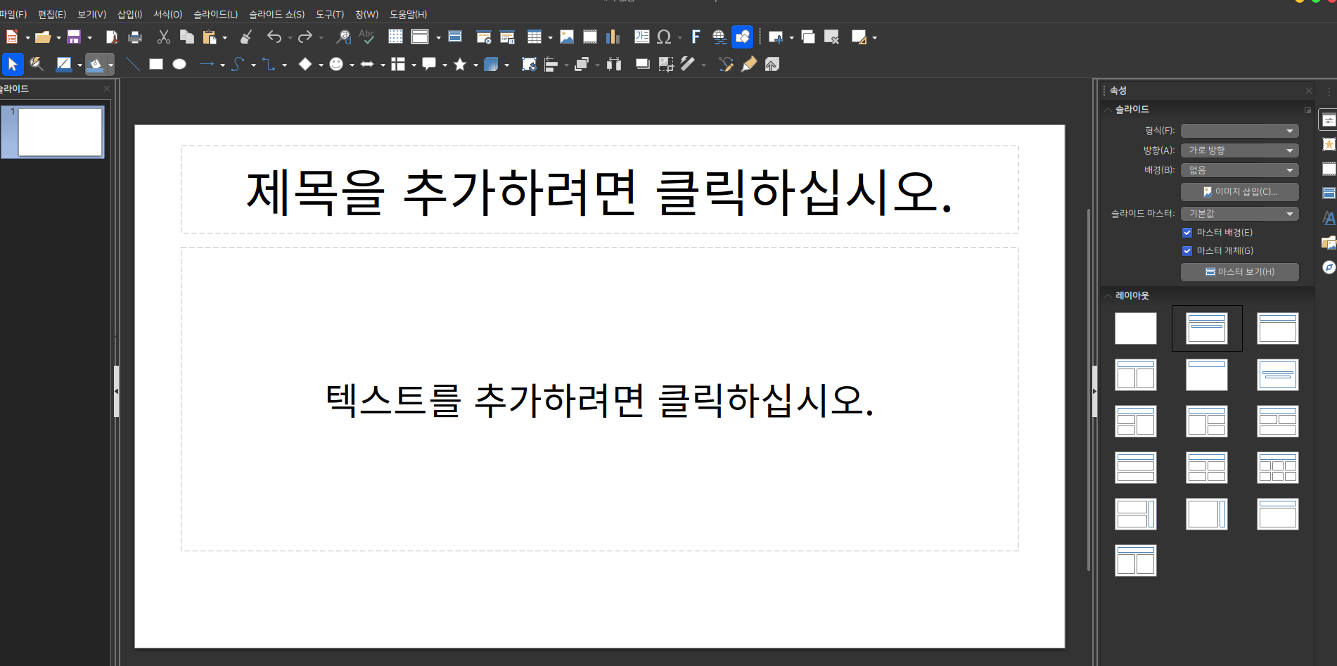 새로운 프레젠테이션이 생성됩니다.