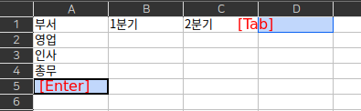 - Enter 또는 Tab 키를 눌러 다음 셀로 이동합니다.