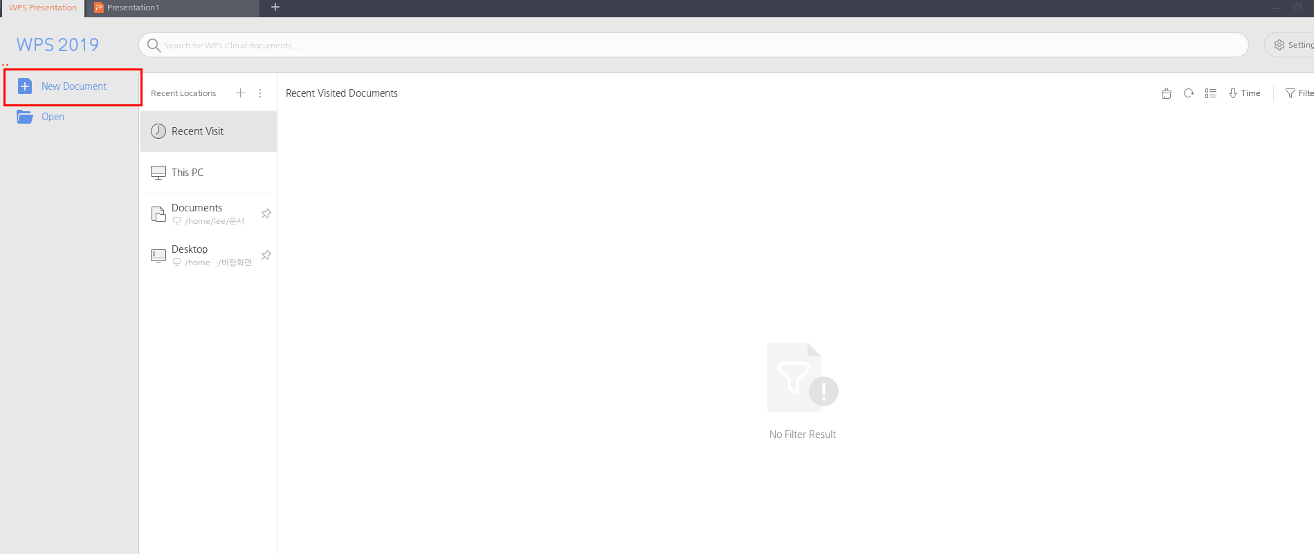 WPS Presentation을 실행시켜 [New Document]를 클릭하면