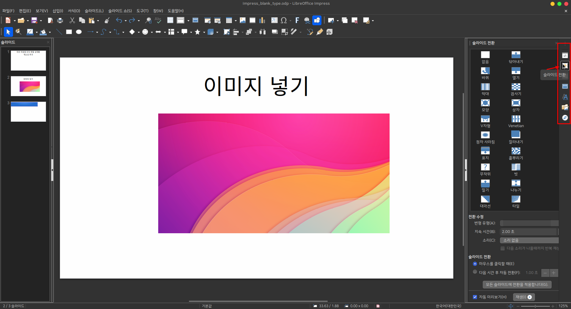 슬라이드에 전환 추가
