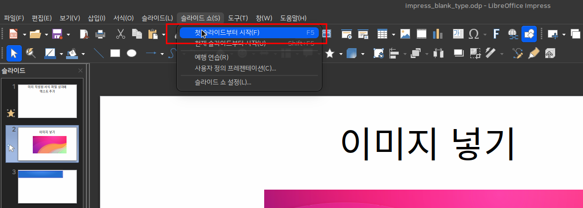 슬라이드쇼 프레젠테이션 시작