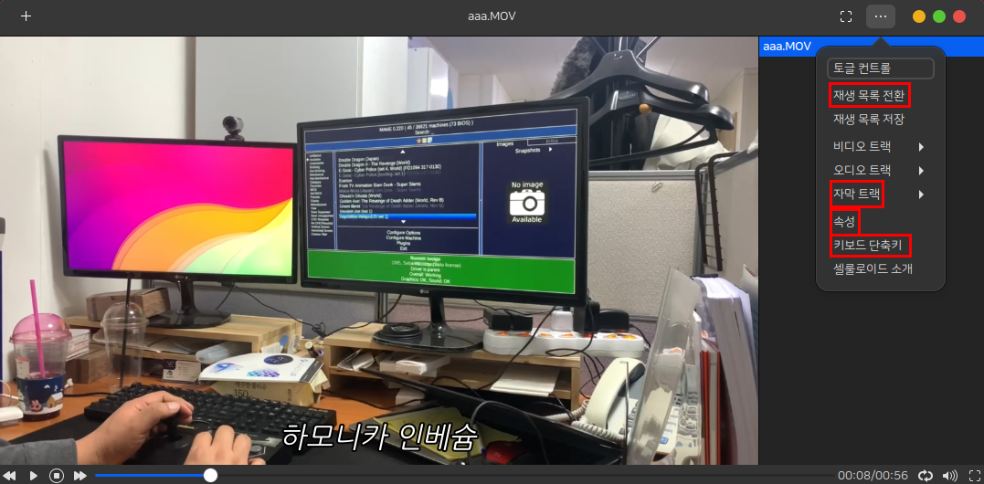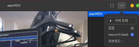 우측 상단의 '버튼을 눌러 재생목록을 열거나, 자막설정, 환경설정 등을 설정할 수 있습니다.