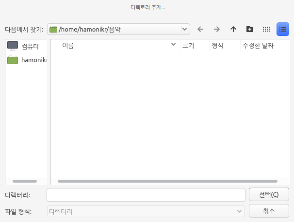 음악파일이 있는 폴더를 선택하고 추가합니다.