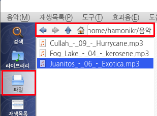 파일 항목으로 이동 후 음악파일이 있는 폴더 안으로 들어가면 다음과 같이 음악들이 표시가 됩니다.