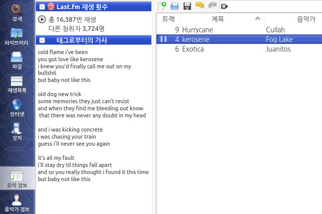 음악을 선택하고 음악정보를 확인하면 Last.fm이라는 곳에서 얼마나 재생되었는지