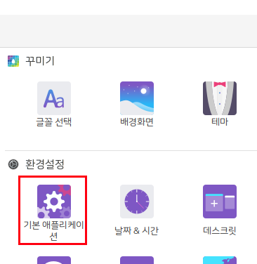 환경설정에 기본 애플리케이션을 클릭합니다.