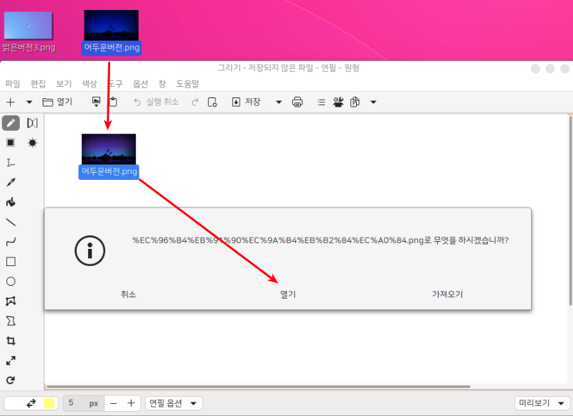 열기는 지정한 이미지를 불러오는 기능입니다.