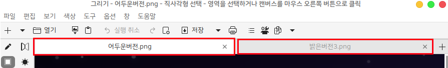 여러개의 이미지를 열기를 통하여 가져올 경우 상단의 탭이 추가되면서 늘어나게 됩니다.