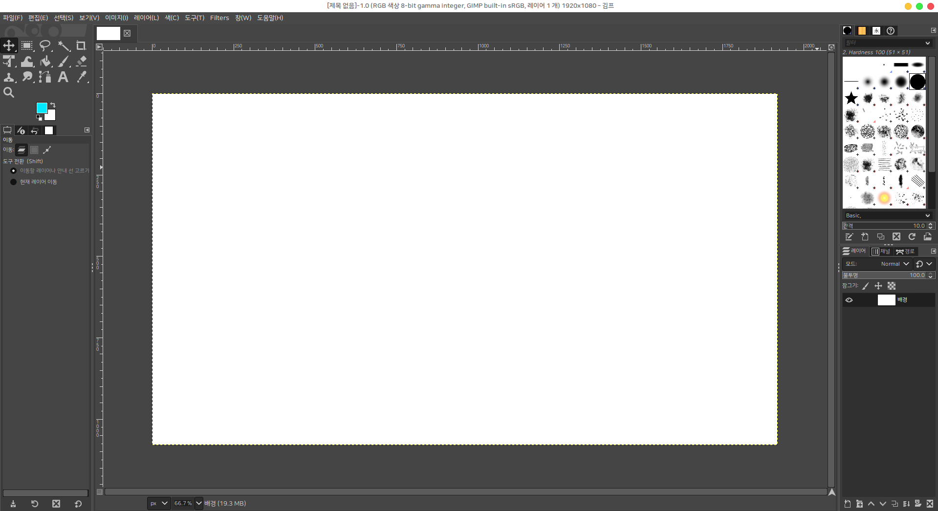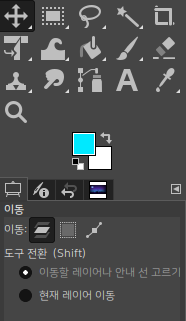김프의 좌측에는 다양한 도구를 선택할 수 있으며