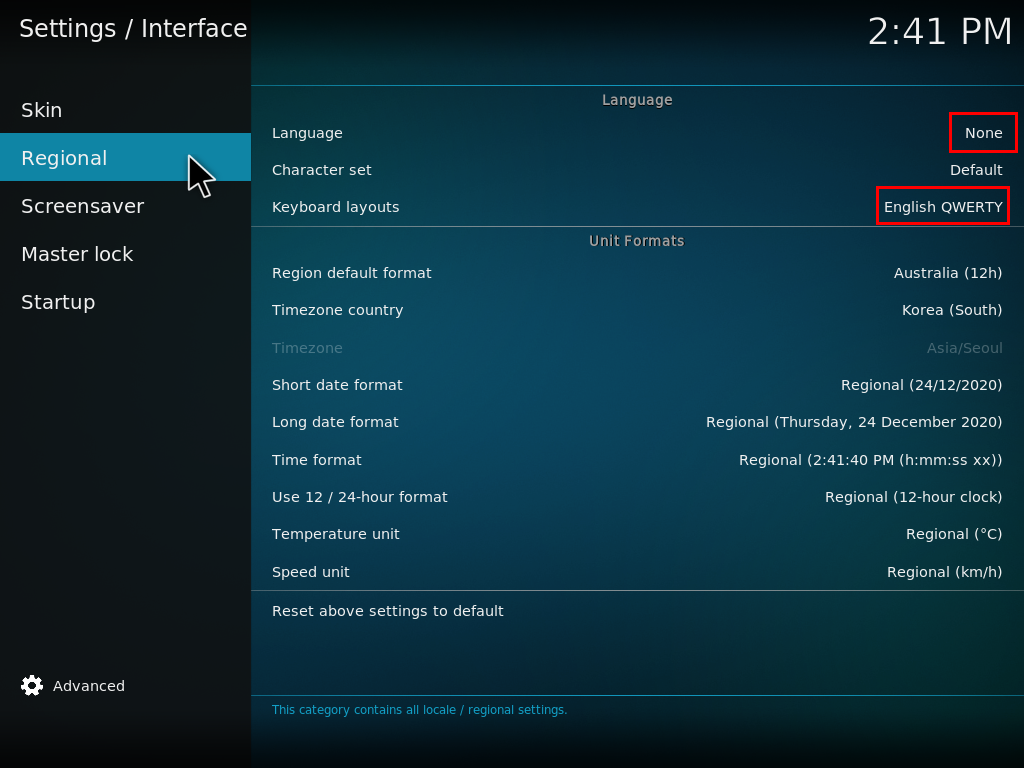 좌측 메뉴중 2번째 Regional(지역)을 선택합니다.