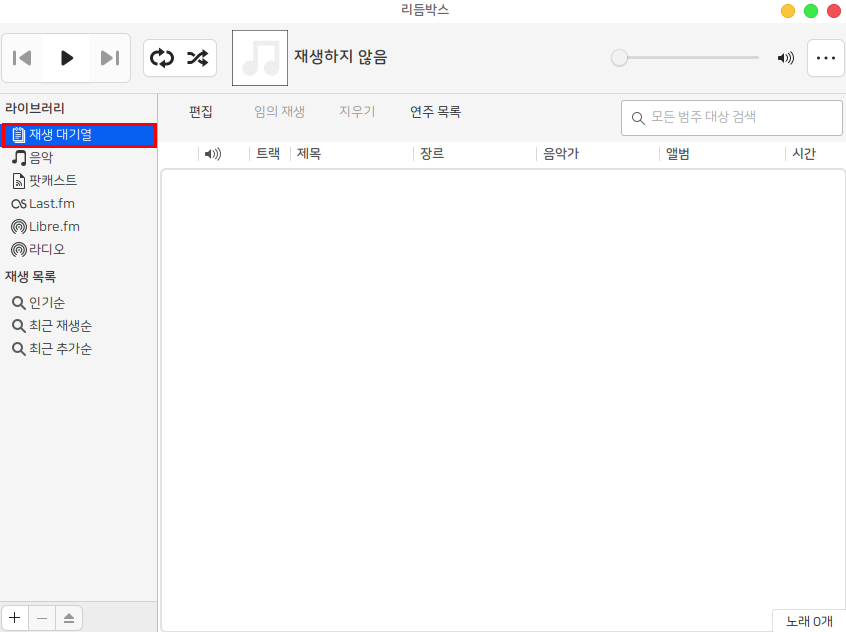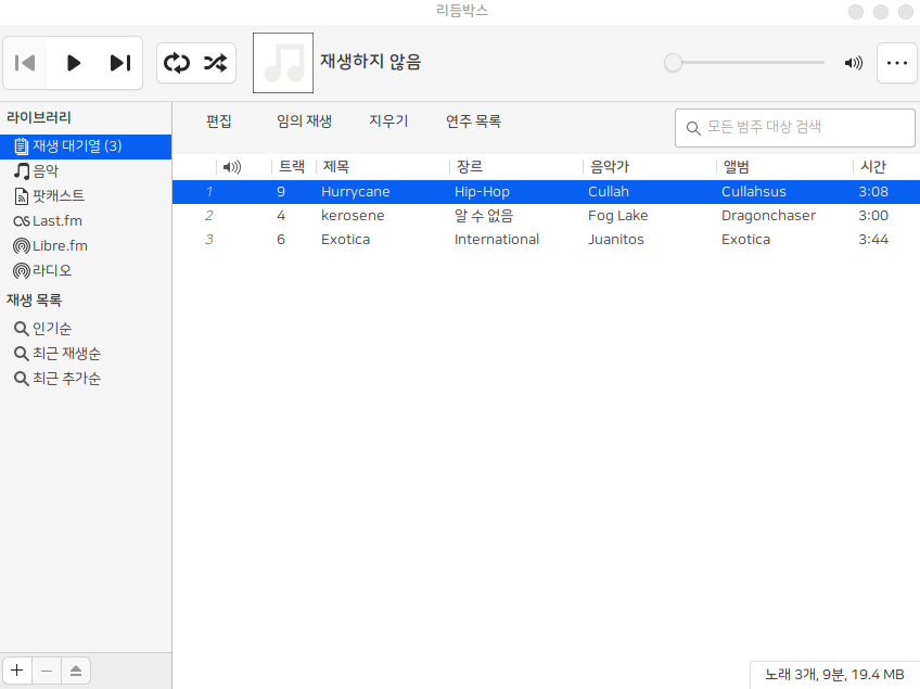 드래그 앤 드롭으로 음악 파일들을 이동시켰다면 다음과 같이 음악이 재생 대기열에 표시가 됩니다.