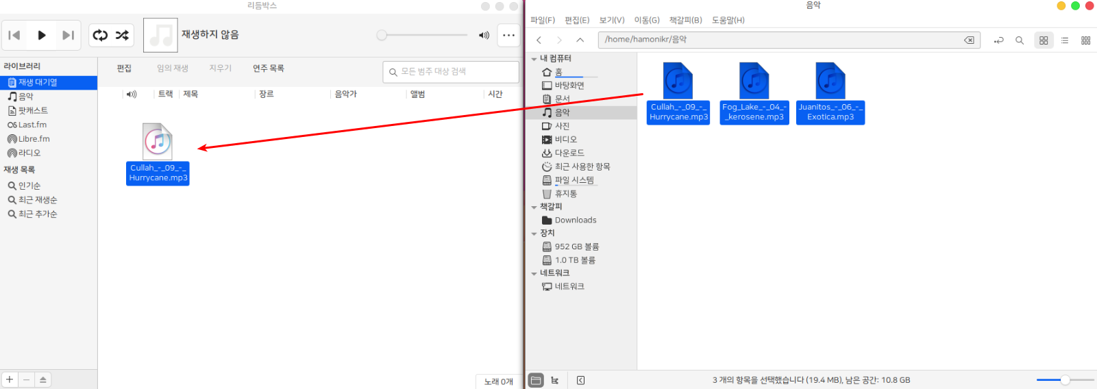 자신이 가지고 있는 음악 파일들을 드래그 앤 드롭으로 가져다 놓습니다.