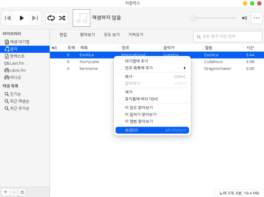 제목과 장르의 이름을 수정하기 위해 우클릭 후 속성을 클릭합니다.