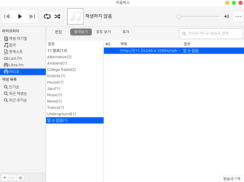 나오지 않는다면 없어진 라디오 주소거나 리듬박스에서 지원하지 않는 주소일 수 있습니다.