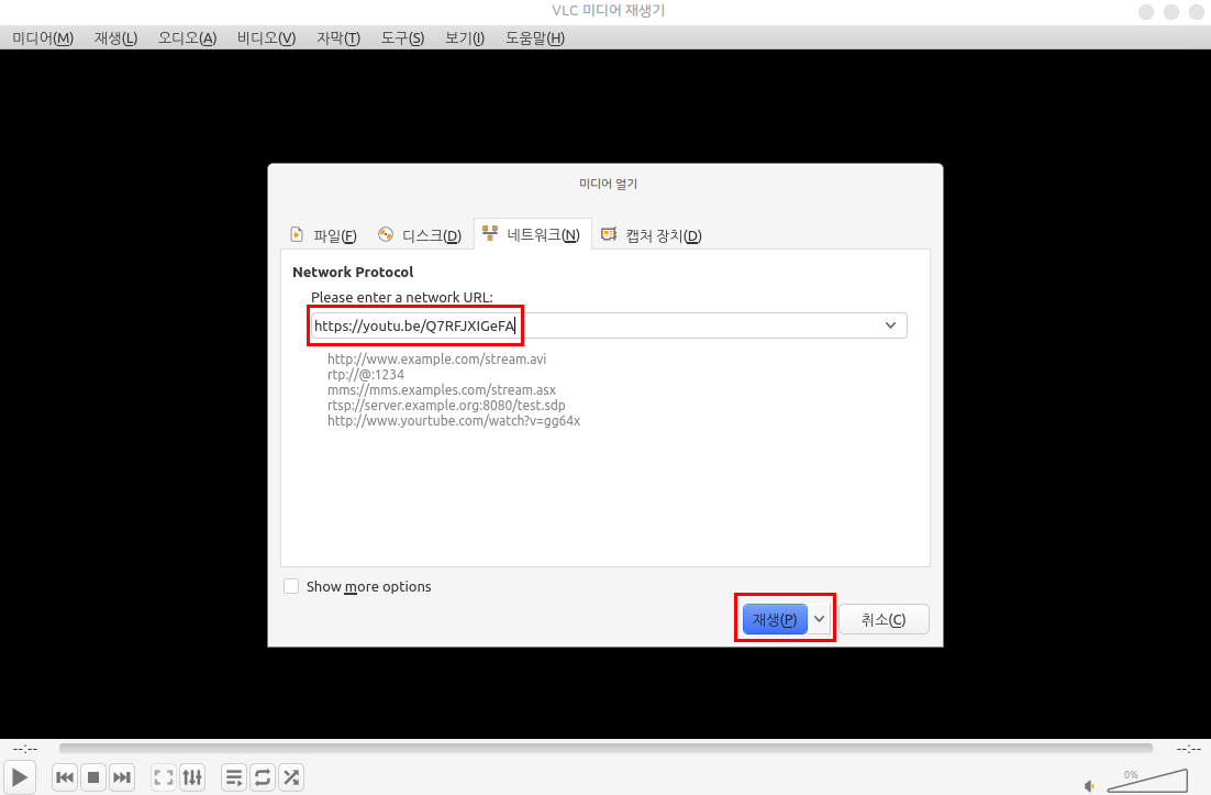mms, rtmp, http 등 다양한 주소를 지원합니다.
