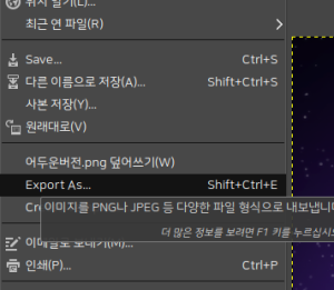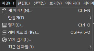 Save, 다른 이름으로 저장, 사본 저장은 김프의 확장자로 저장되며 나중에 다시 수정을 할 때 필요한 파일입니다.
