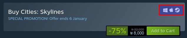 스팀에서는 각 게임의 정보에 실행 가능한 운영체제에 대한 아이콘을 제공하고 있습니다.