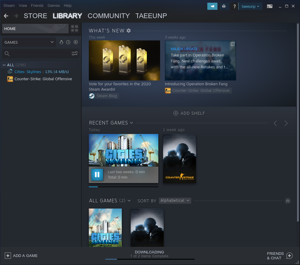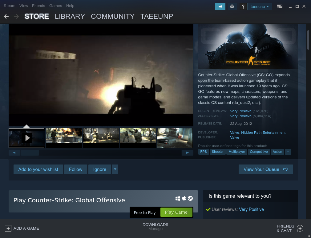 스팀 런처를 실행하여 카운터 스트라이크를 설치합니다.