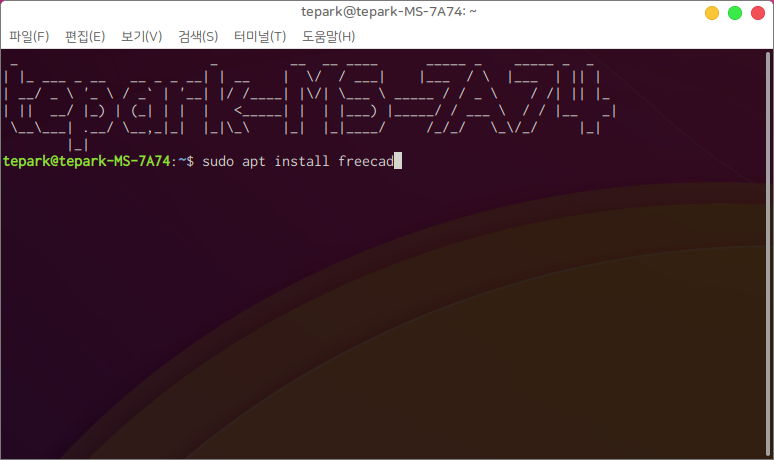 터미널창을 열어 아래와 같이 입력하여 다운로드 설치합니다.