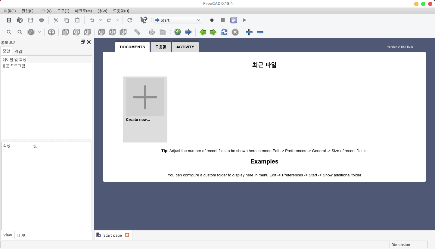 다운로드 설치가 완료되면 시작메뉴 > 그래픽 > FreeCAD를 실행합니다.
