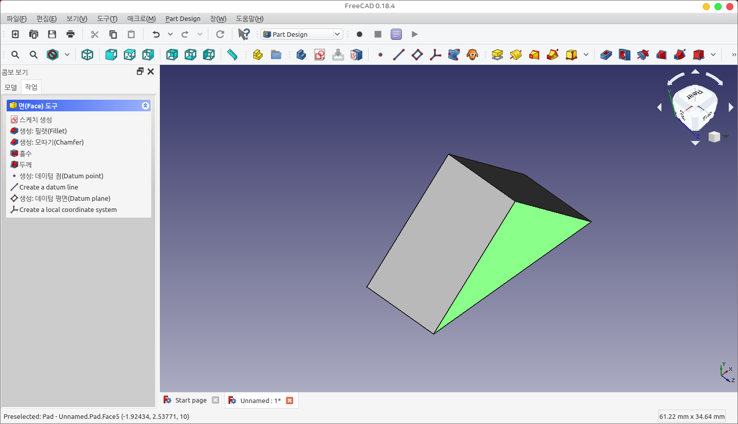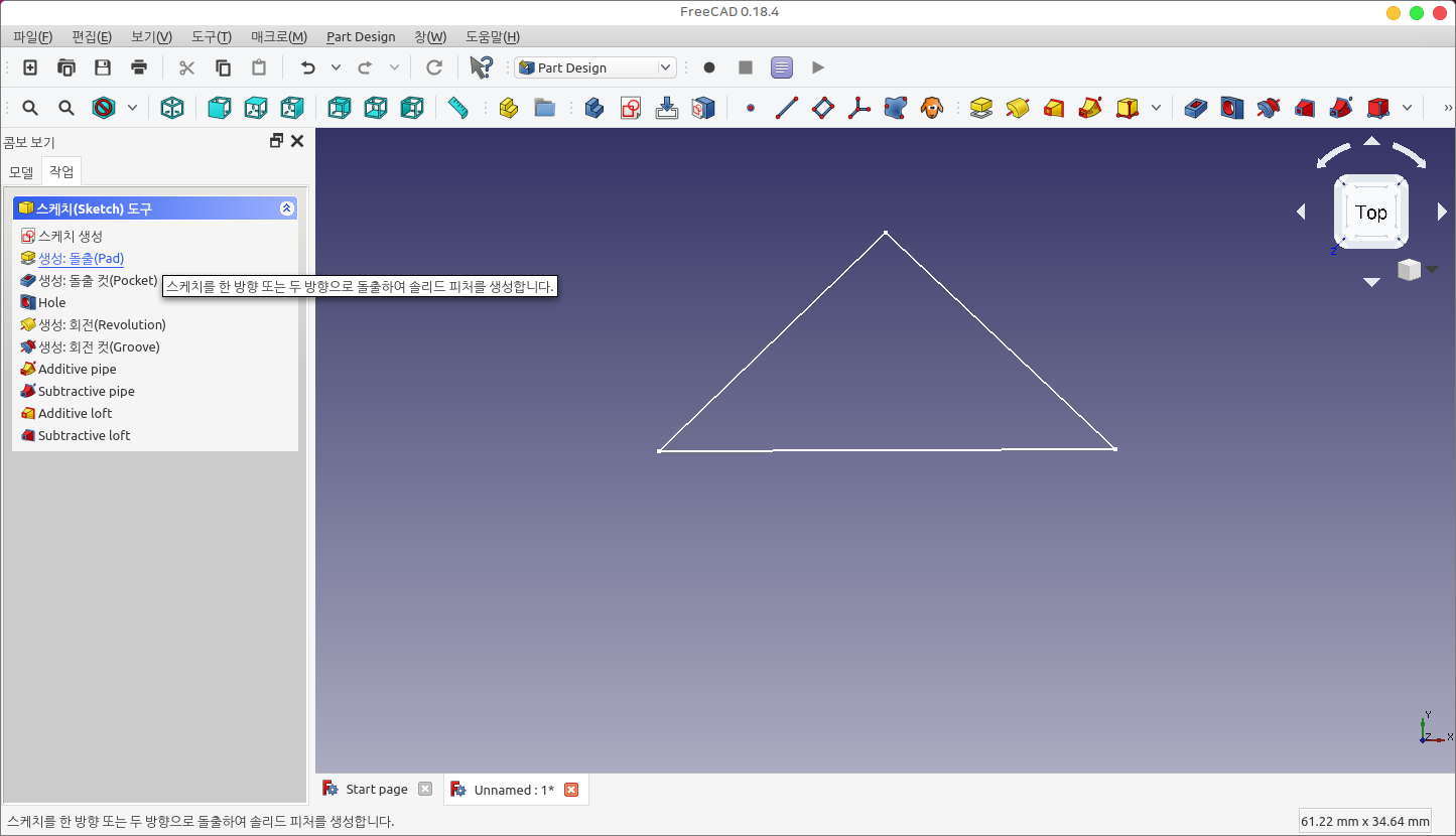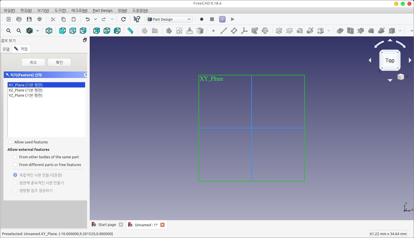 새문서를 만든 다음에 Part Design을 선택합니다.