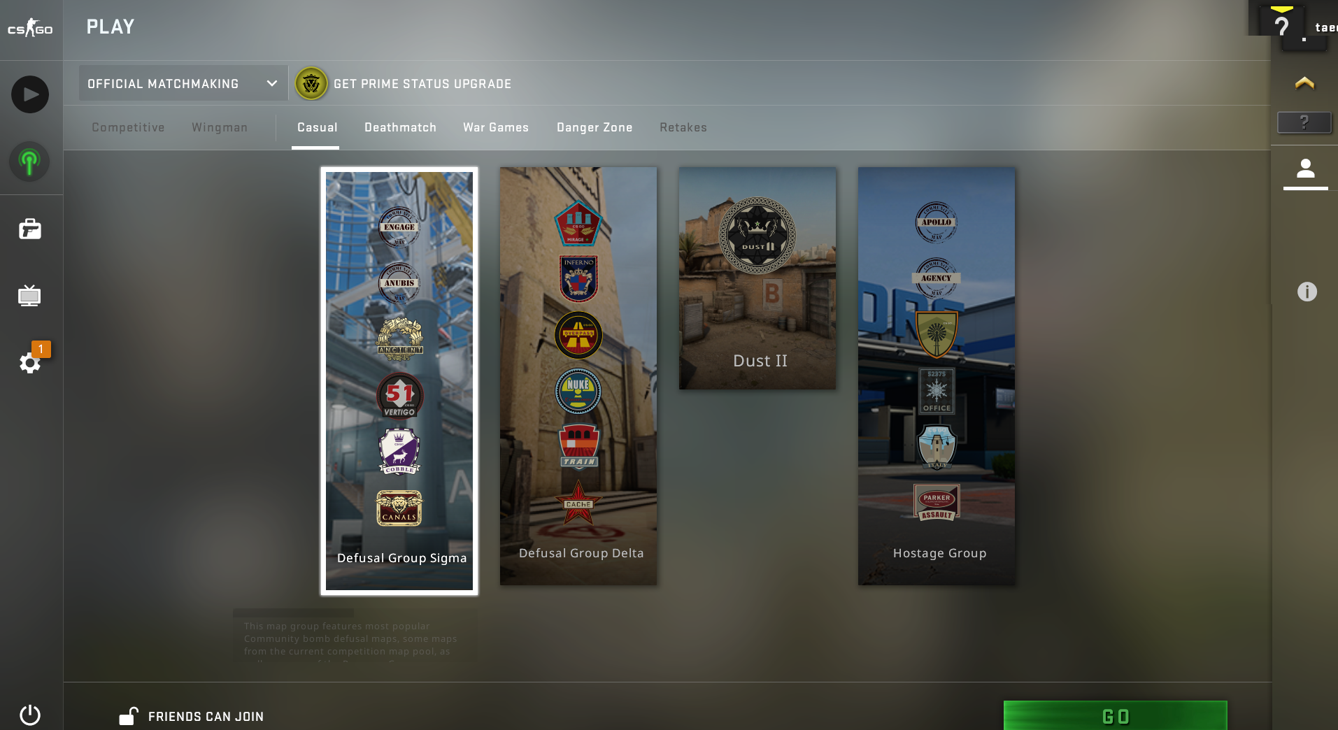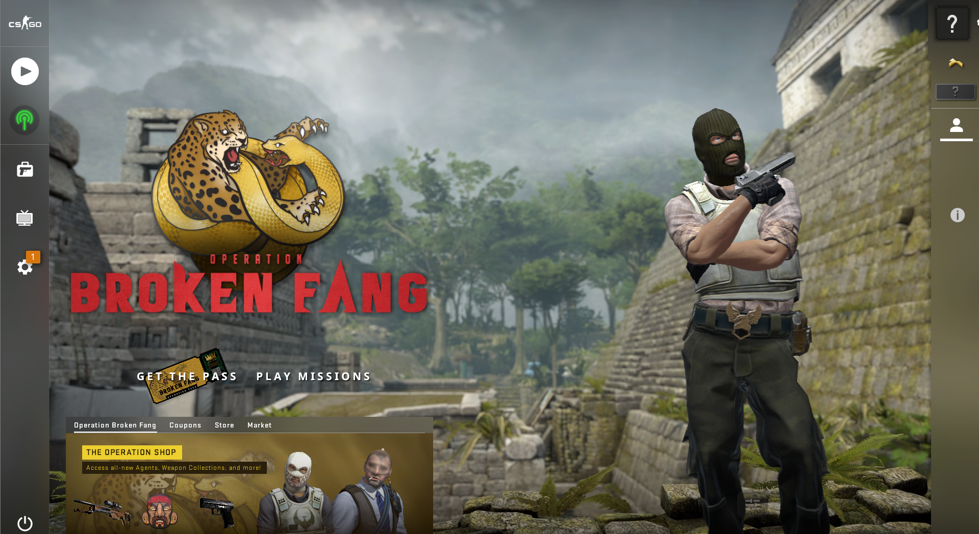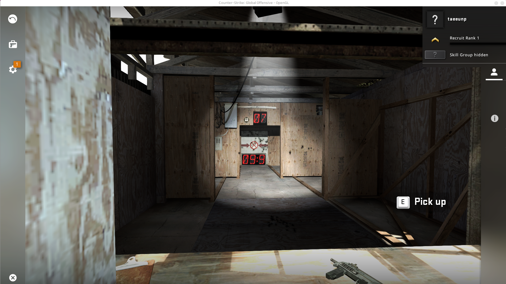카운터 스트라이크를 실행하면 우측엔 플레이어의 정보, 좌측에 게임을 선택할 수 있는 메뉴와 인벤토리 정보를 제공합니다.
