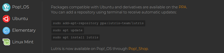 > sudo add-apt-repository ppa:lutris-team/lutris