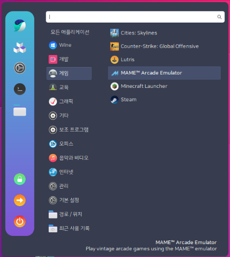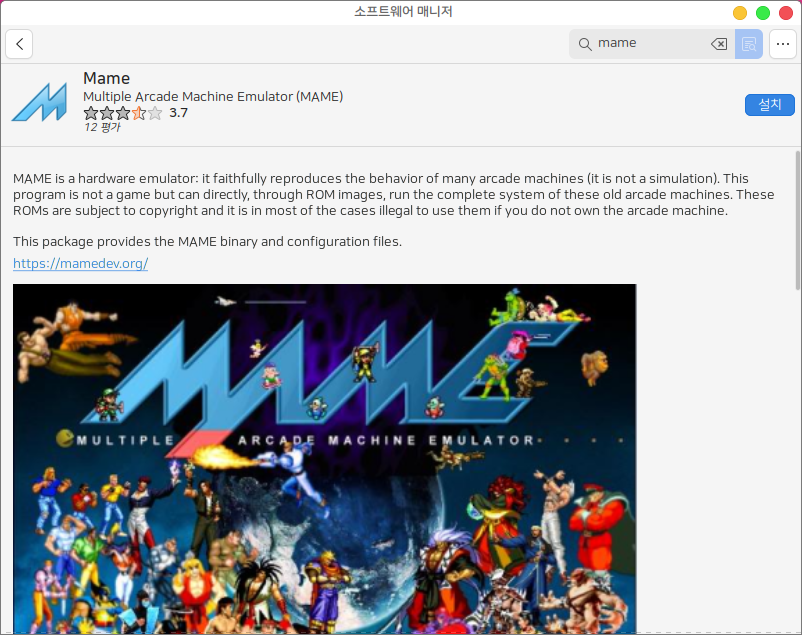 소프트웨어 매니저에서 MAME를 검색하여 설치하여 줍니다.