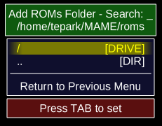 ROMs를 선택하면 기본 설정된 디렉토리가 보입니다. 해당 디렉토리는 관리자 권한이 필요한 경로이므로 /home 디렉토리 밑에 새롭게 roms 디렉토리를 만들어 줍니다.