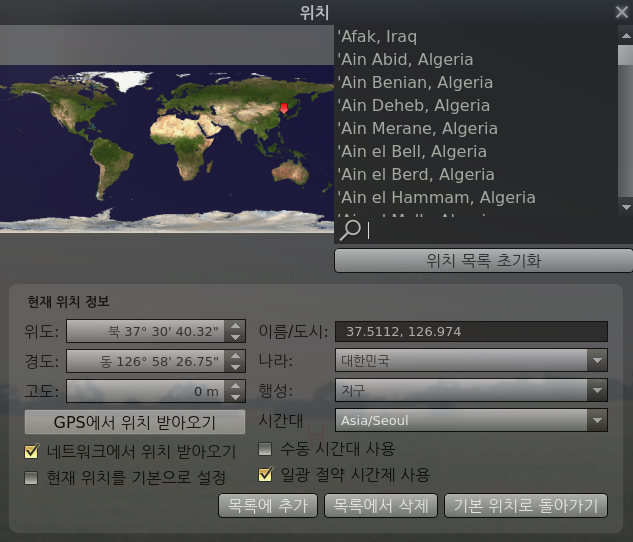 프랑스 파리로 되어있던 기본 지역과 시간대역을 서울로 바꿀 수 있습니다.