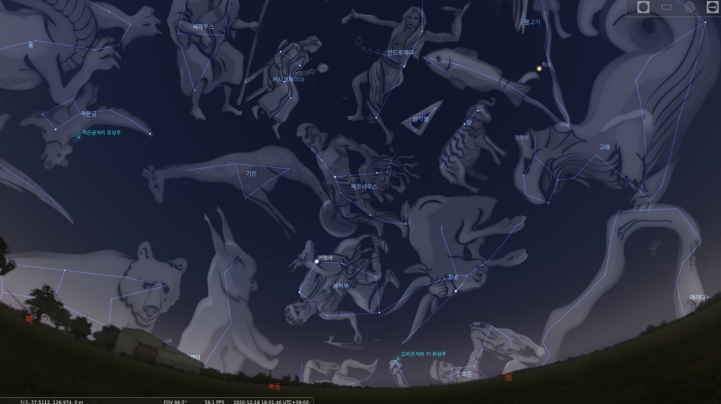서울에서 관측되는 별자리들을 서양에서 전해지는 별자리 형태로 확인할 수 있습니다.
