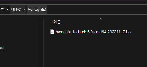 내 PC 항목에 Ventoy라는 저장 장치 드라이버가 새로 잡힙니다.