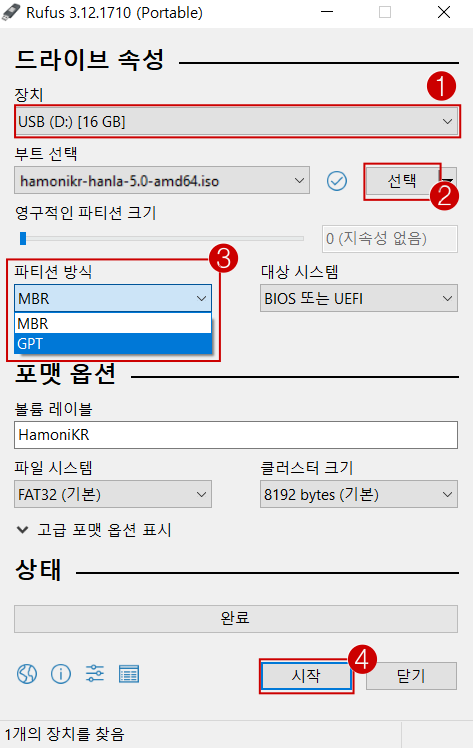 하모니카 5.0, 6.0에서 부팅 USB 만들기