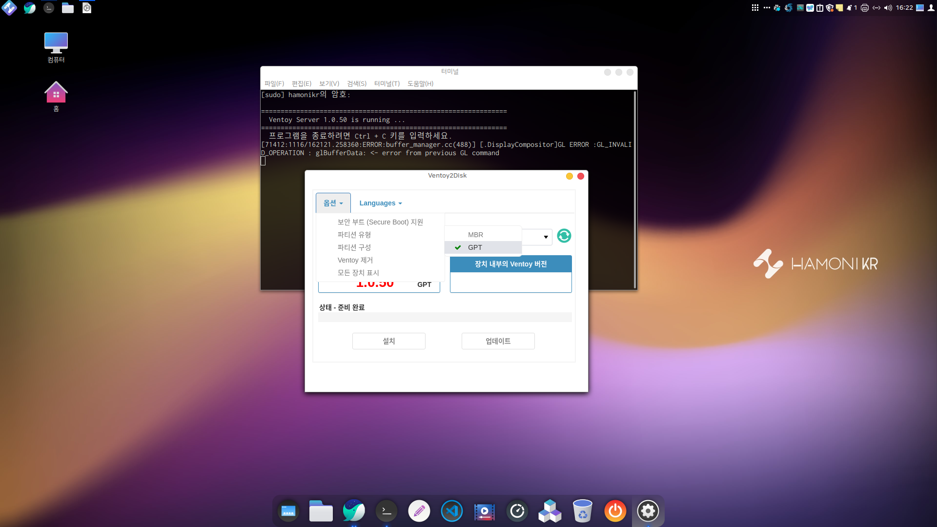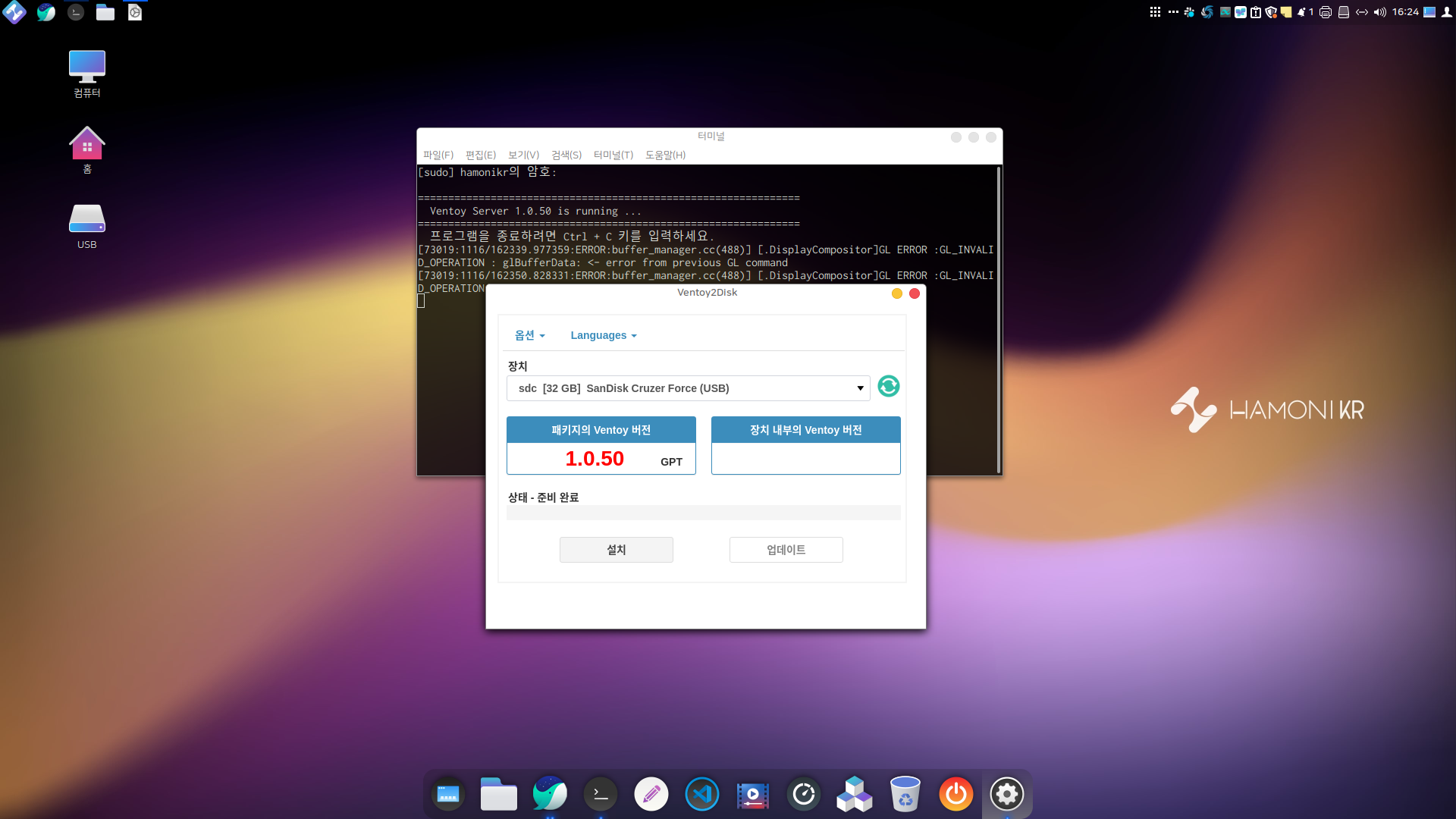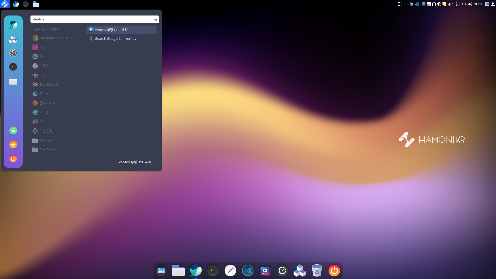 하모니카 5.0, 6.0에서는 기본 설치되어 있는 Ventoy를 이용하여 쉽게 부팅 USB를 만들고 간편하게 설치하실 수 있습니다.