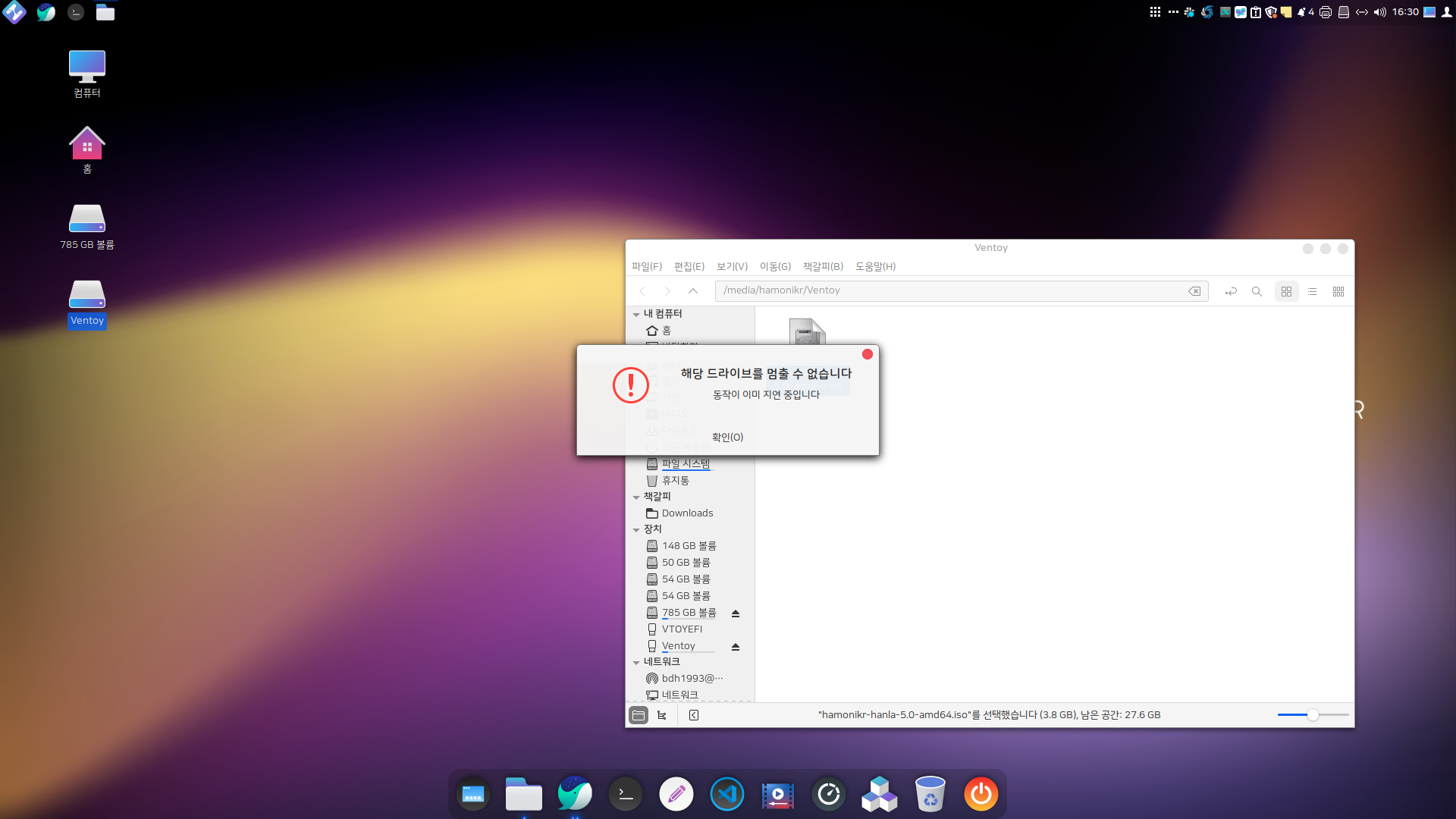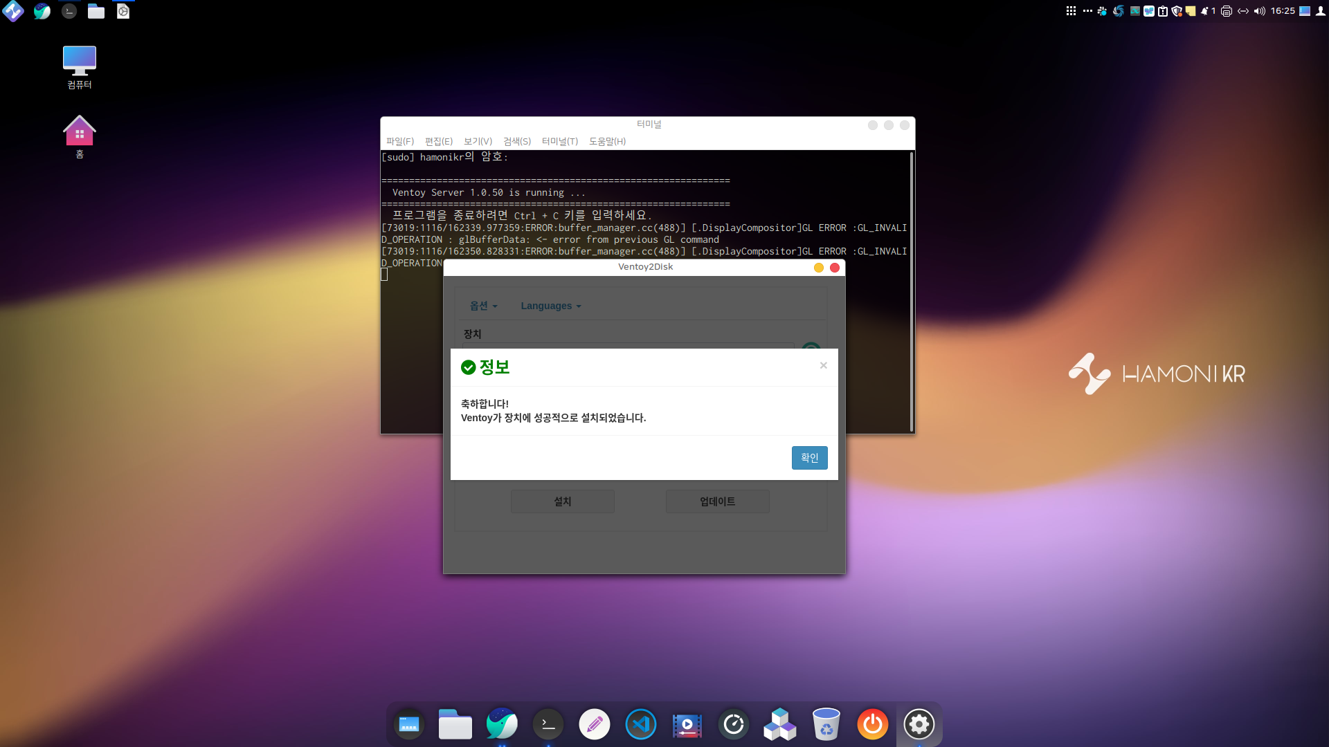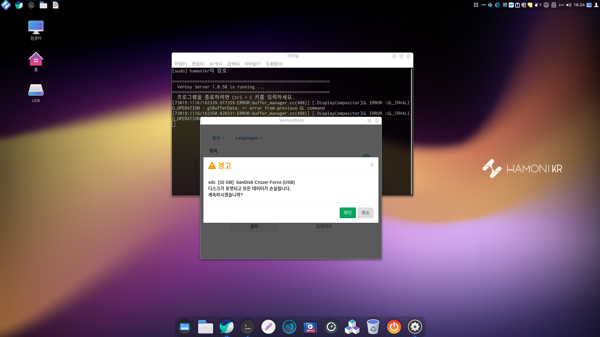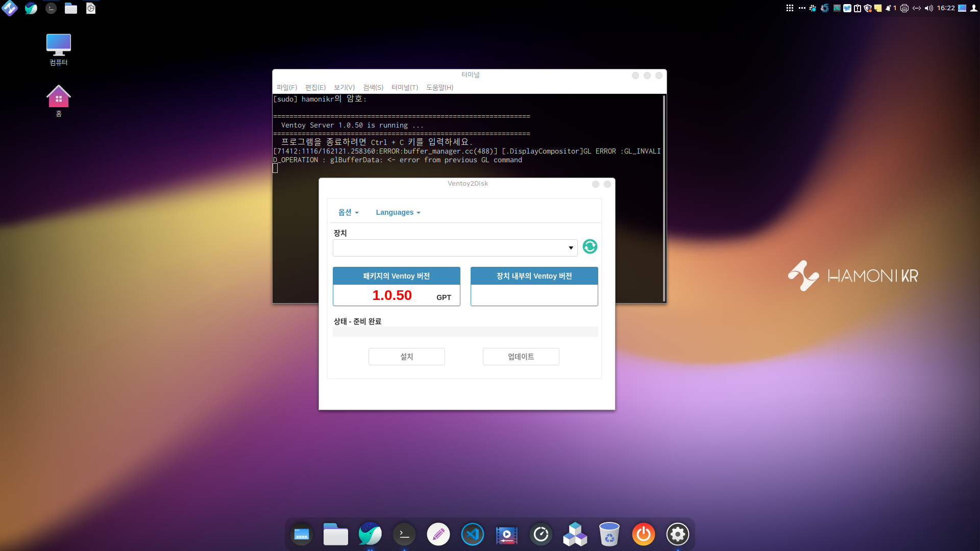 하모니카 5.0, 6.0에서는 기본 설치되어 있는 Ventoy를 이용하여 쉽게 부팅 USB를 만들고 간편하게 설치하실 수 있습니다.