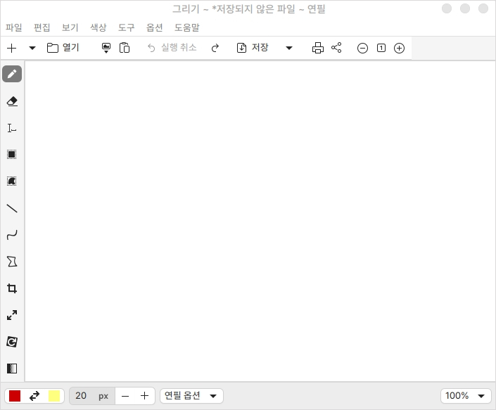 기본 사용 방법은 좌측의 도구를 선택하고 하단의 색상, 크기, 옵션을 정해서 사용합니다.