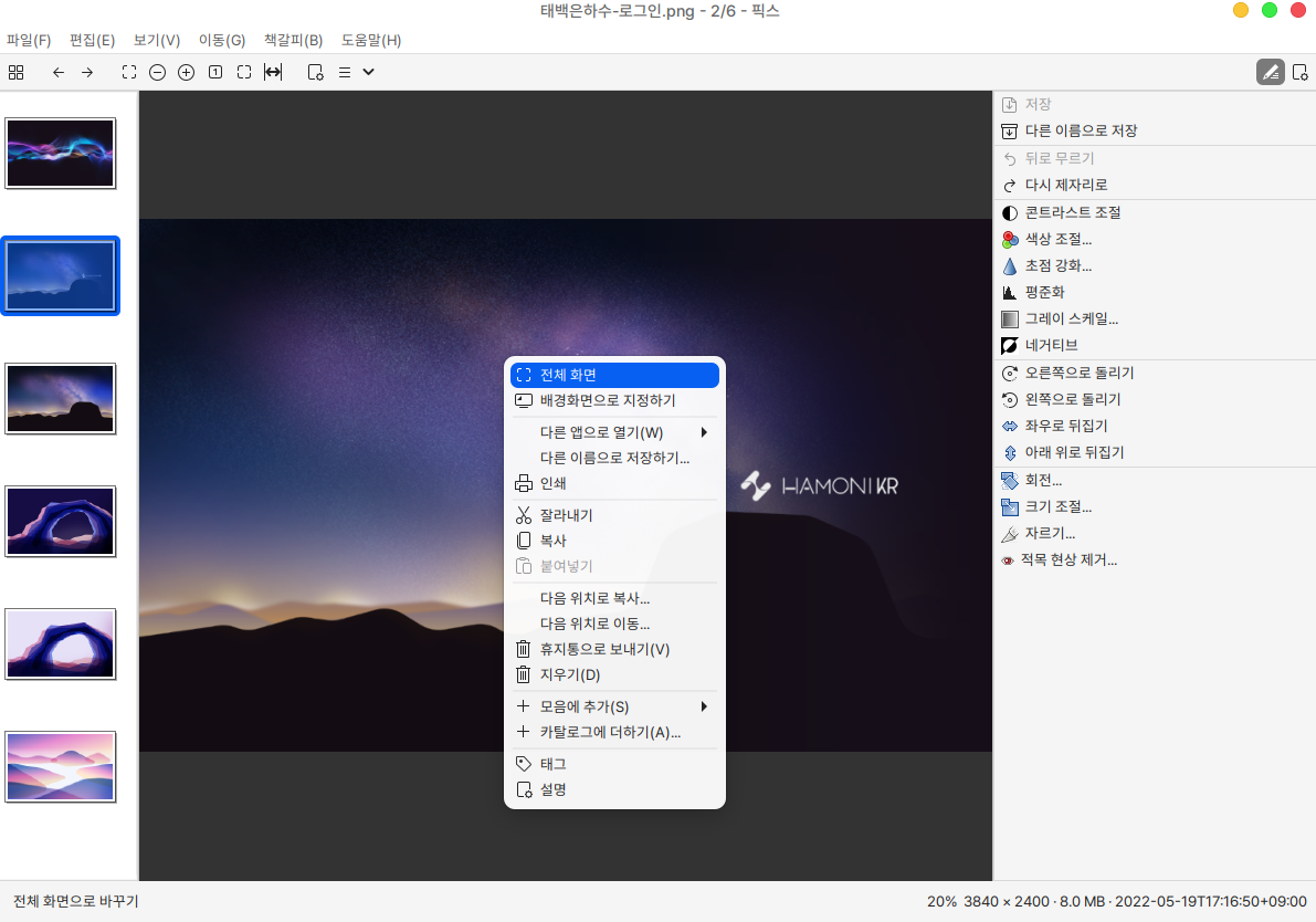 바로 배경화면으로도 지정이 가능하며 이외에도 여러 기능을 지원합니다.