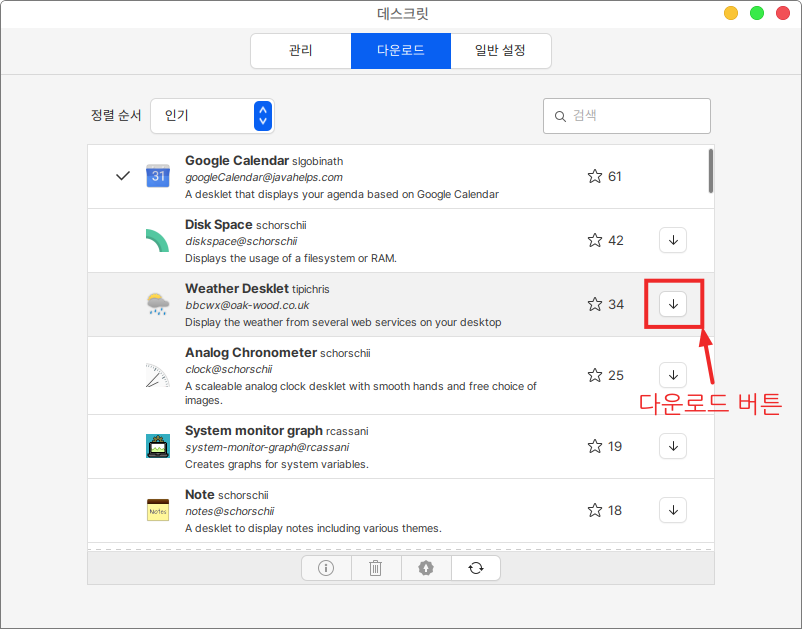 다운로드 매뉴에서 바탕화면에 추가 할 어플리케이션을 다운받습니다.