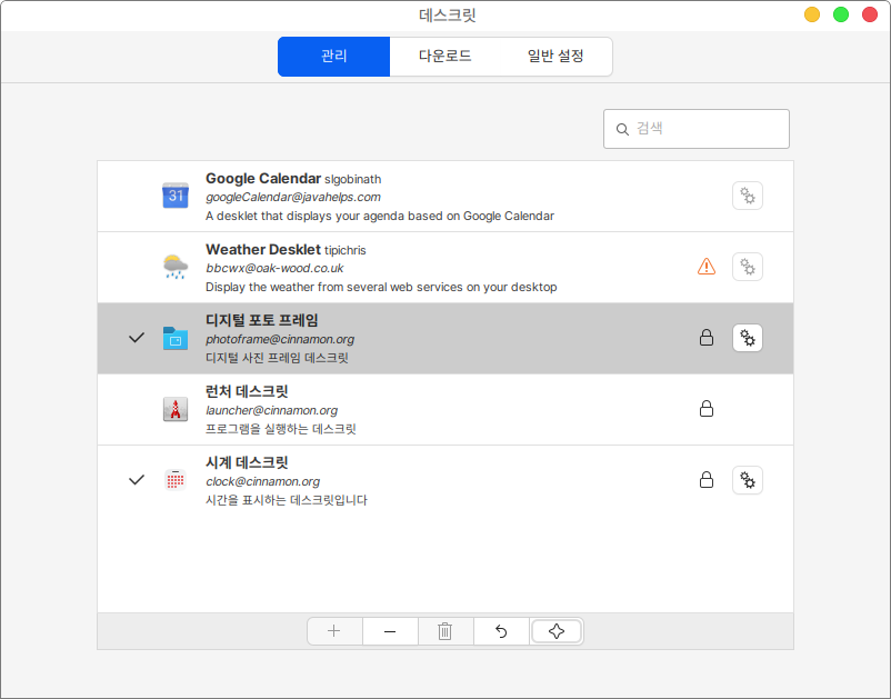 관리 매뉴에서 다운로드 받아진 어플리케이션을 선택하고 하단의 + 버튼을 통해 바탕화면에 데스크릿을 추가한다.