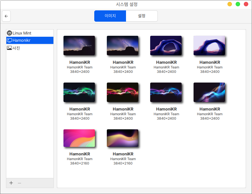 이미지 항목에서는 배경화면 이미지의 변경이 가능합니다.