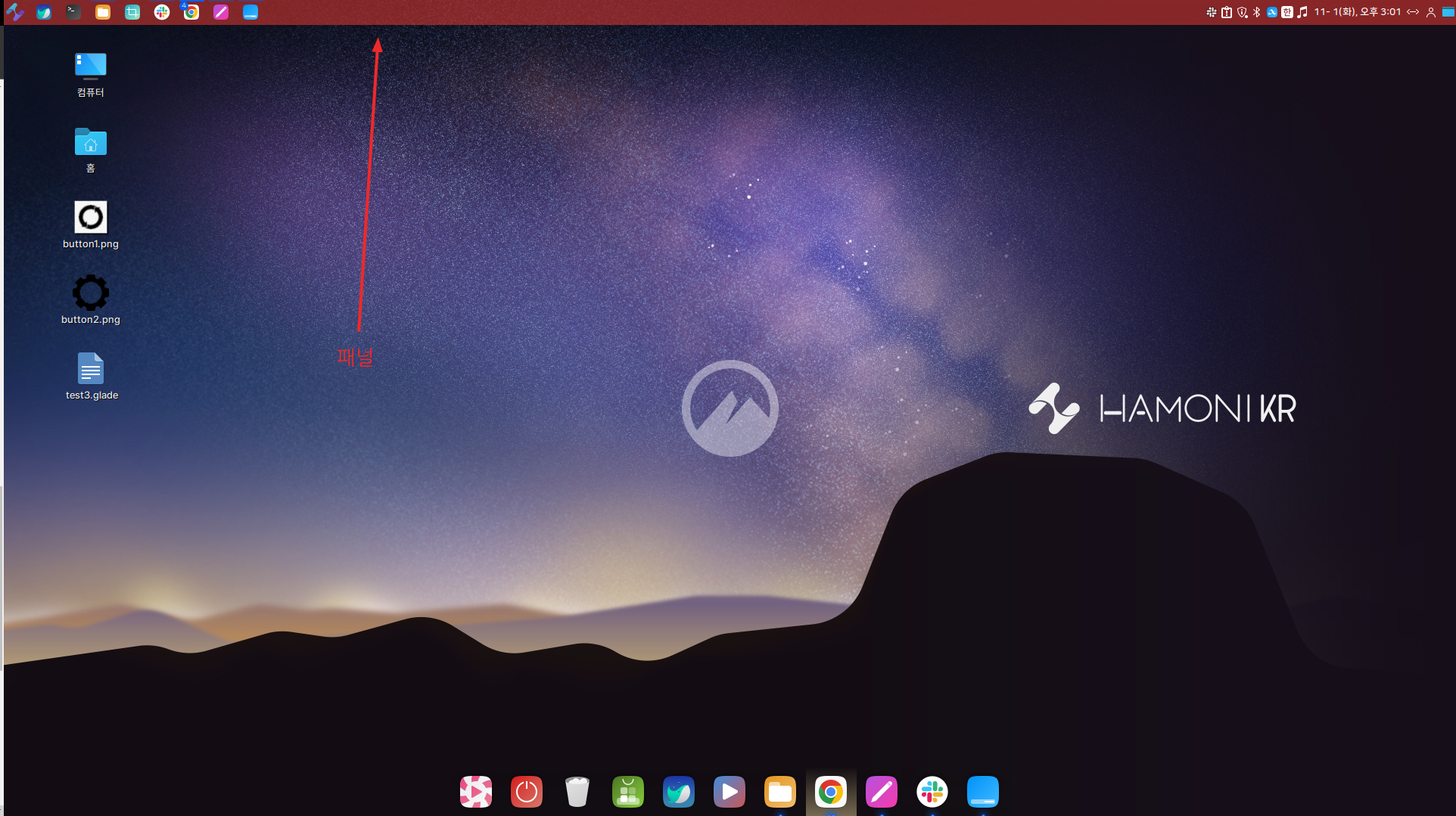 화면 상단의 패널바 설정이 가능합니다.