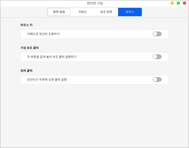 마우스 항목에서는 마우스 관련 설정을 할 수 있습니다.