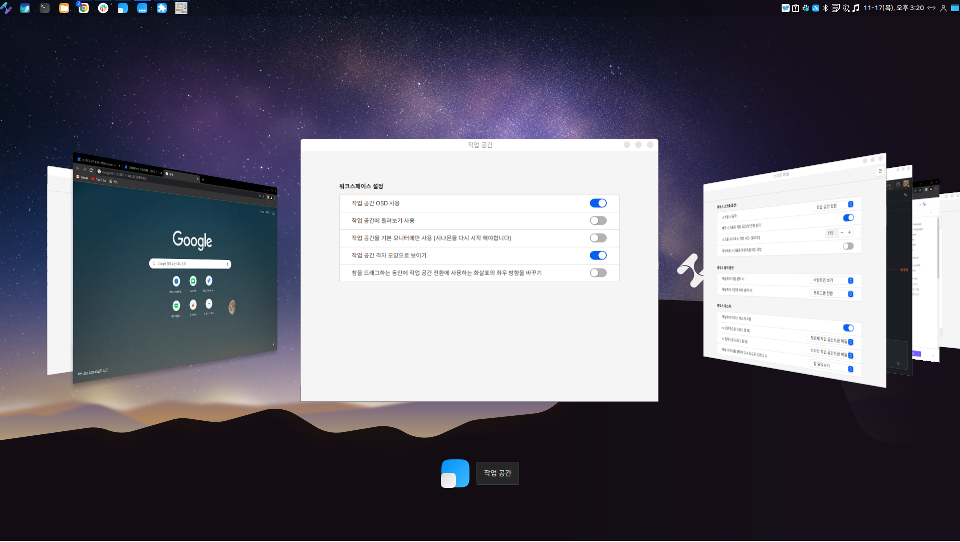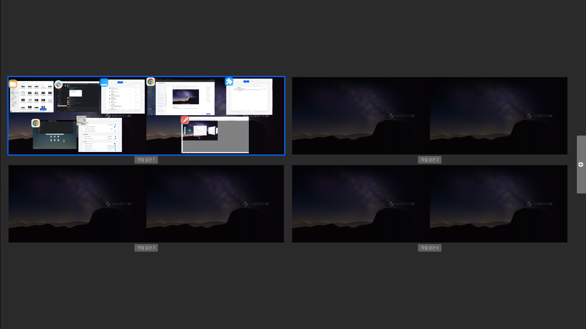 "Ctrl+Alt+위방향키"를 통해서는 모든 작업공을 확인할 수 있습니다.