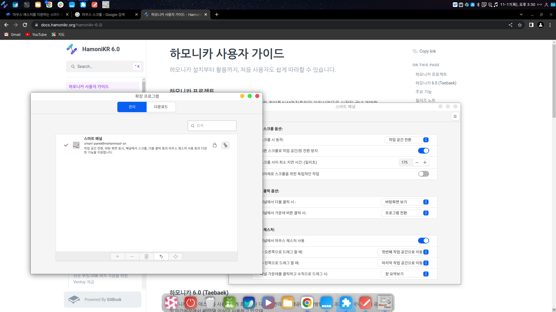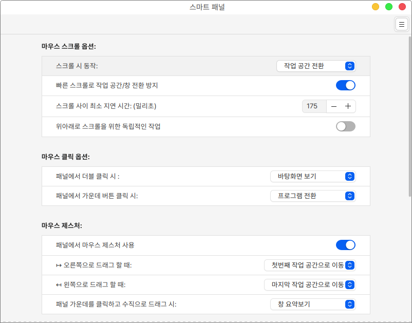 마우스 제스처와 키보드 단축키를 이용해서 스마트 패널 기능의 사용이 가능합니다.