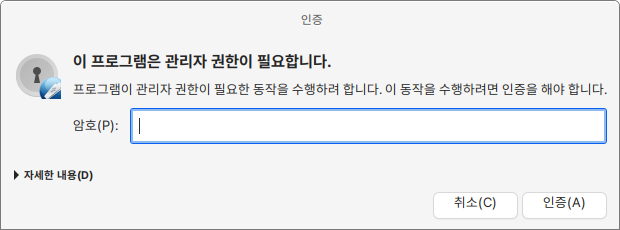 로그인한 계정의 비밀번호를 입력하면 프로그램이 실행됩니다.