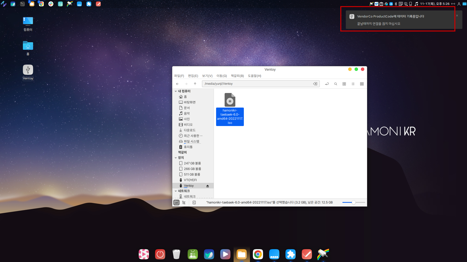 하모니카 6.0에 기본 설치되어 있는 Ventory를 이용하여 쉽게 부팅 USB를 만들고 간편하게 설치하실 수 있습니다.